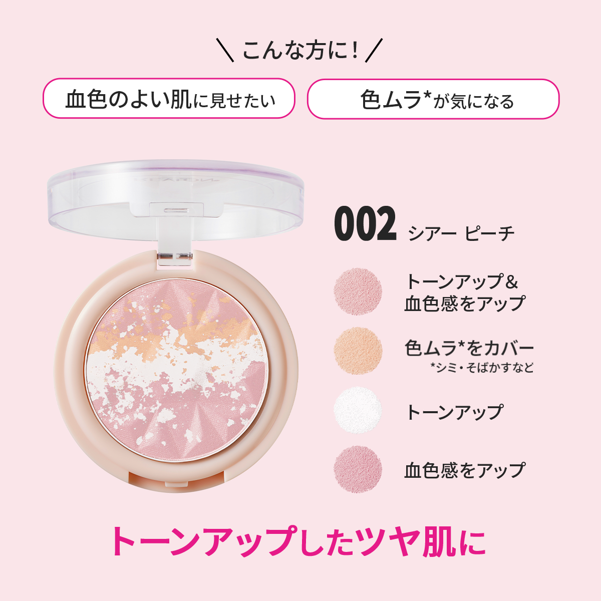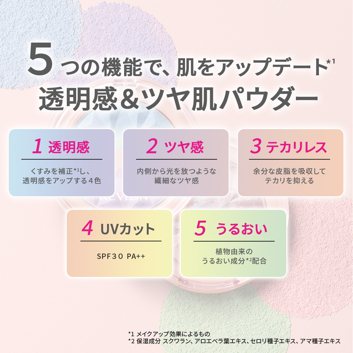 ベースメイクアップの仕上げや、外出先でのお化粧なおしにお使いください。