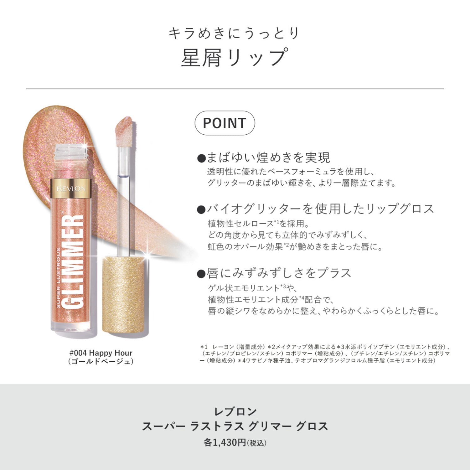 透明性に優れたベースフォーミュラを使用し、グリッターのまばゆい輝きを、より一層際立てます - バイオグリッターを使用したリップグロス